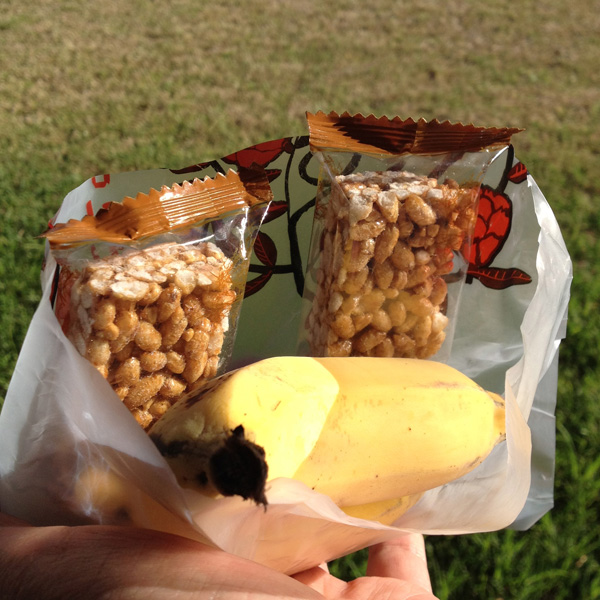 鞄の中には、おこしとバナナが入っていて、小さな声で『とってください。』と声がしました。