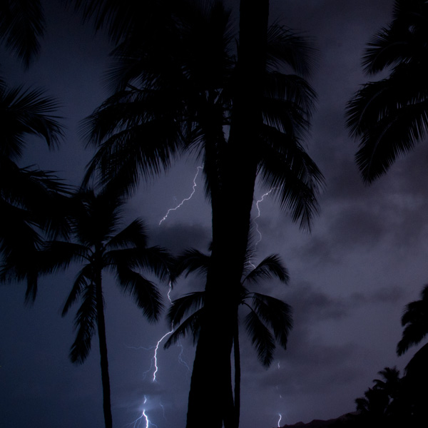 雲行きが怪しくなって来た午後5時過ぎ。空はピカピカし始め、バケツをひっくり返したような豪雨。ハワイでは珍しく轟音が響き渡りました。停電の中、粘って撮ってみました。強烈な雷の光と音は、めらめらと高笑いしたくなる様な力強さを…
